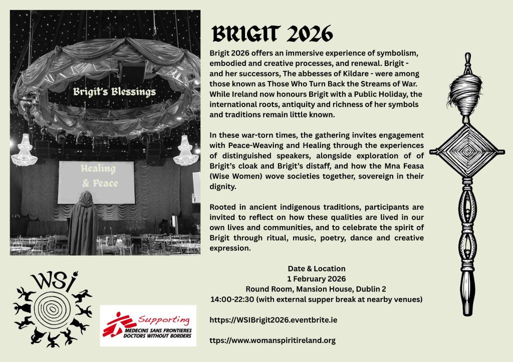 I’m delighted to be working with Woman Spirit Ireland (WSI) for the 2026 Brigit Festival “Brigit’s Blessings: Healing and Peace Weaving”. I’m looking forward to reading from Mantles, my collaborative exploration of Brigid with visual artist Margo McNulty. Other speakers and performers include Rosari Kingston, Michelle Le Baron, Mary Condren, Bridget O’Connell-Regan, Mari Fitzduff, Moya Cannon, Ruth Marshall, Anne O’Reilly, Grace Wells, Nuala Hayes.